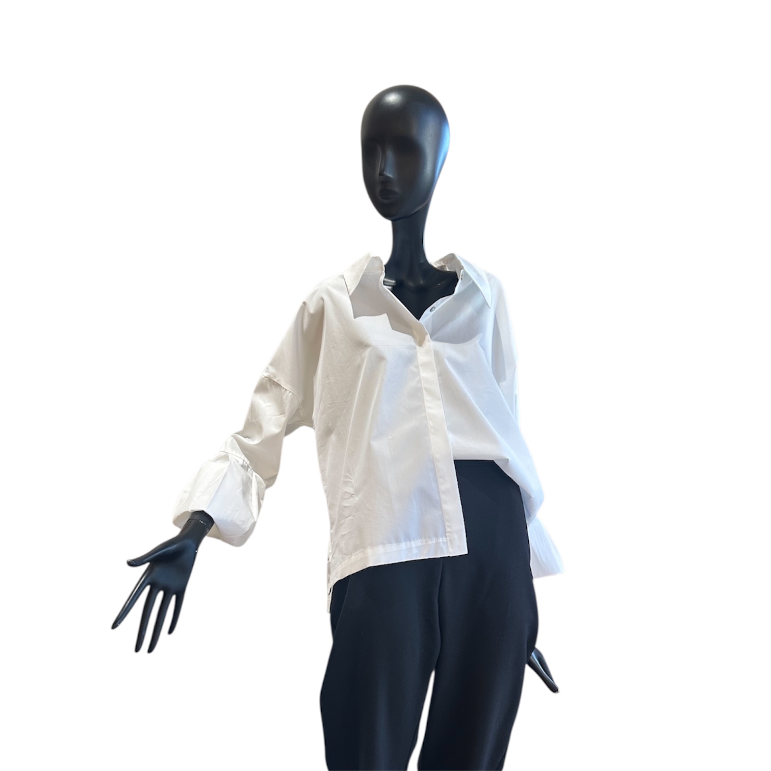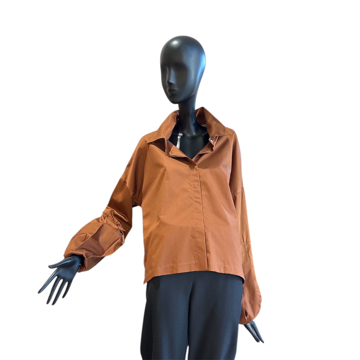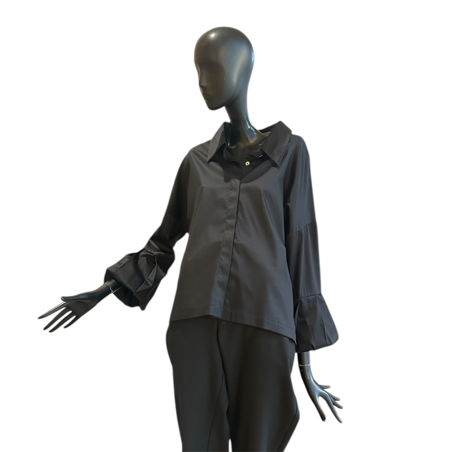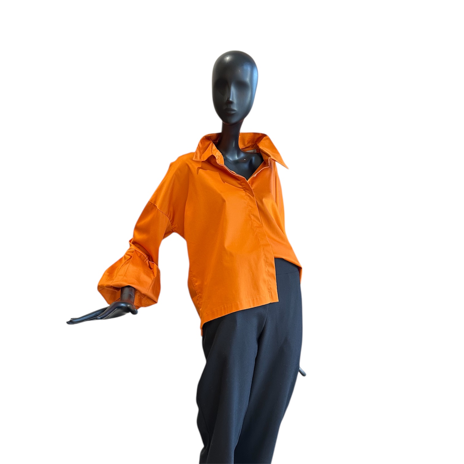 Blusa Império curta confecionada em algodão em Portugal. Caracterizada pela manga balão de pregas, uma peça intemporal e versátil que eleva qualquer look básico num mais interessante. Disponível numa paleta de cores diversificada.