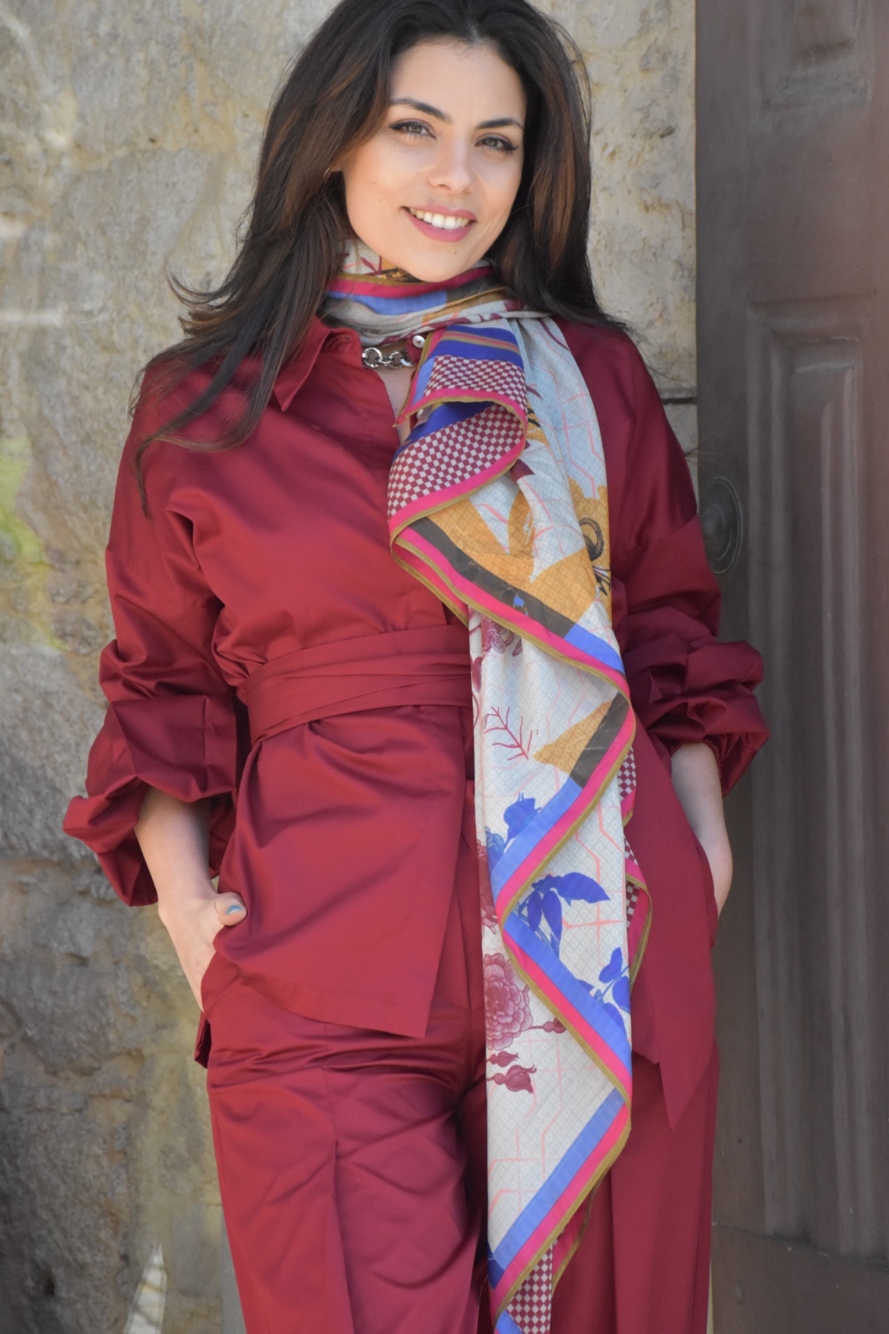 Azul elétrico, Bordeaux, Mostarda e caramelo: 100% algodão