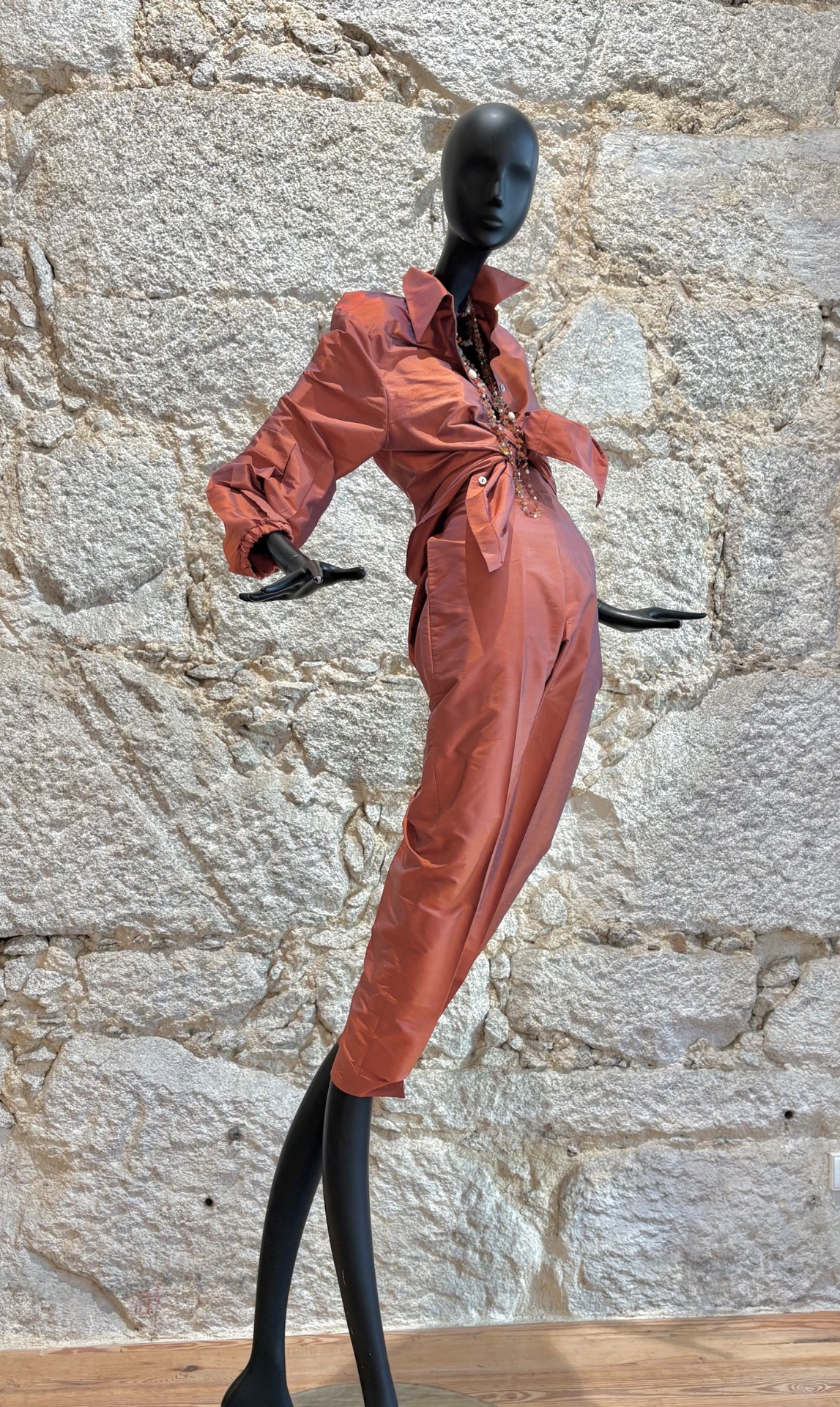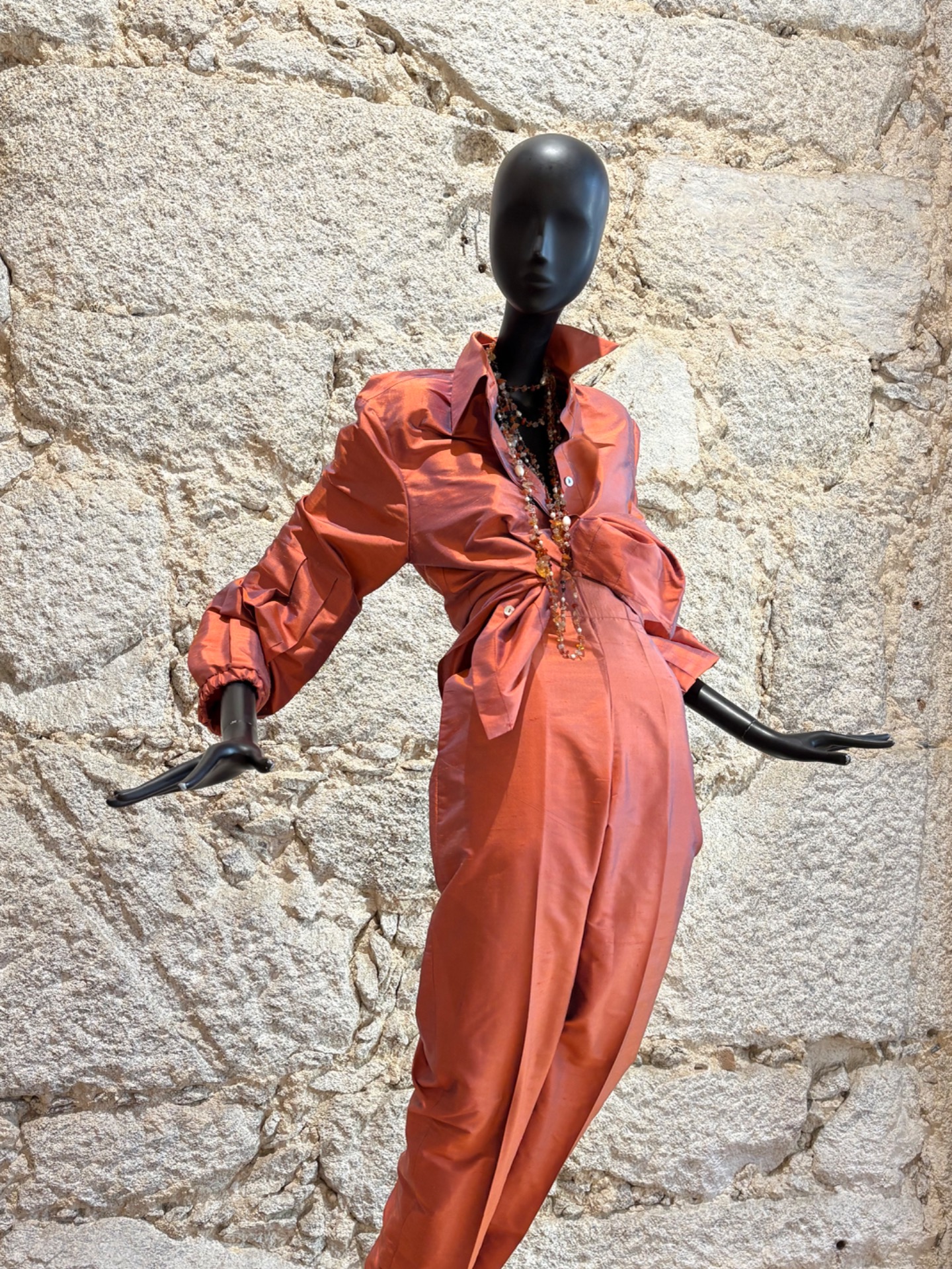 Calças cigarrete confecionadas á mão em seda selvagem, com textura natural e ligeiramente irregular que confere caráter e sofisticação à peça. Apresentam um corte elegante e estruturado, ideal para um visual contemporâneo e refinado.