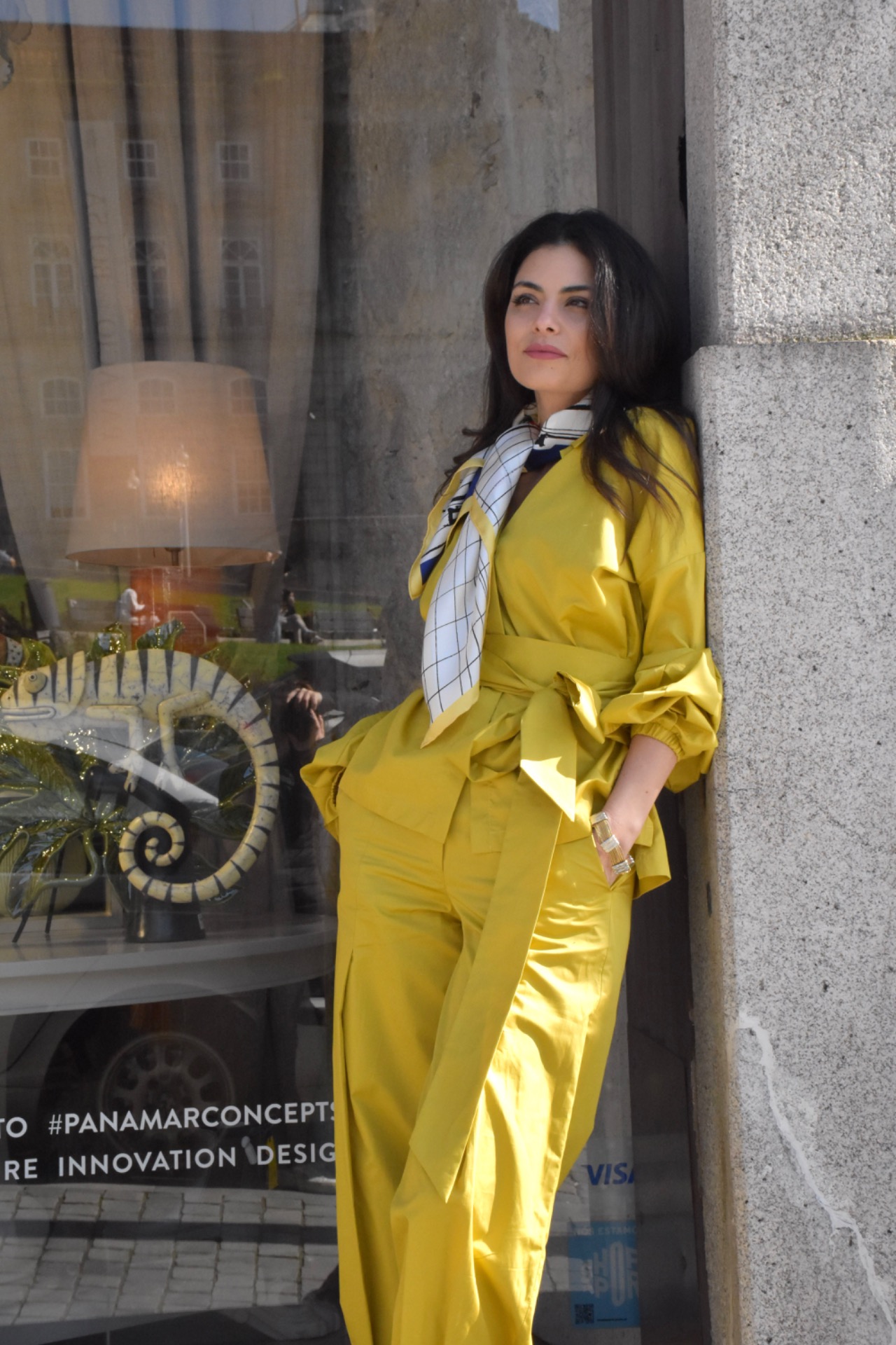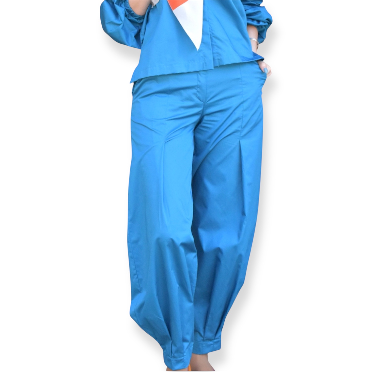 Calças com pregas de algodão.