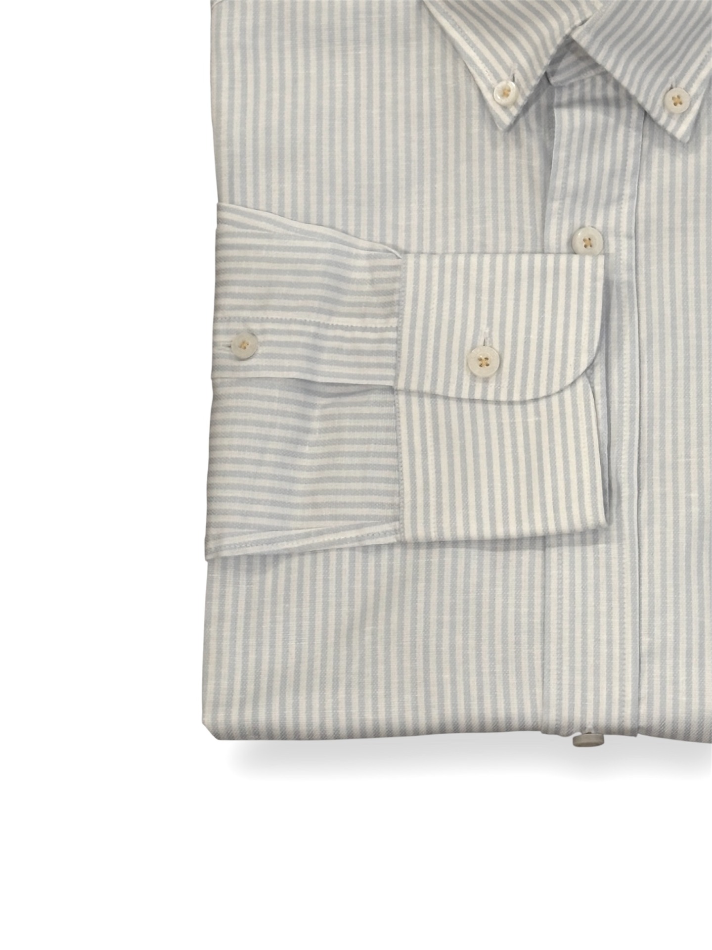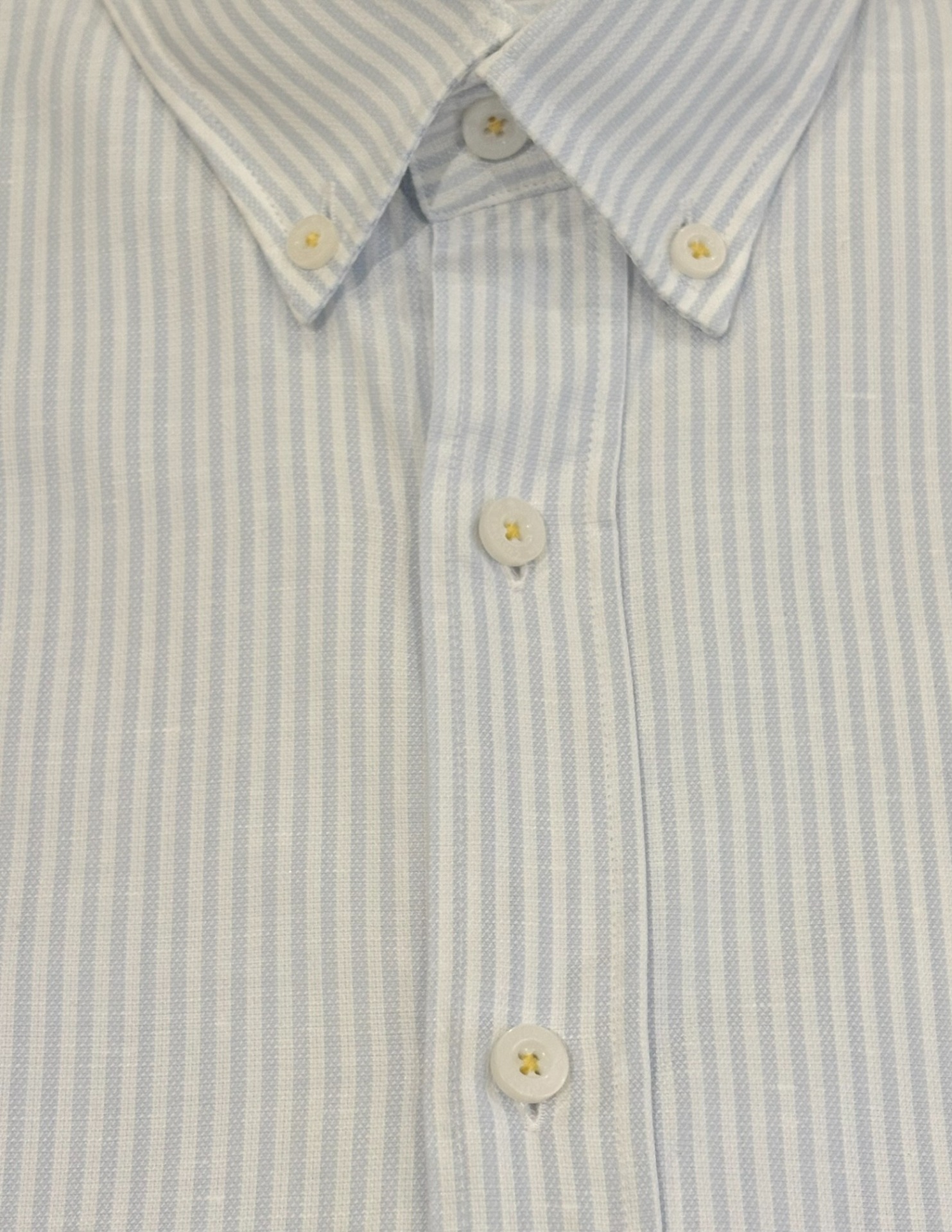 Camisa riscas de linho em azul claro, corte regular.
