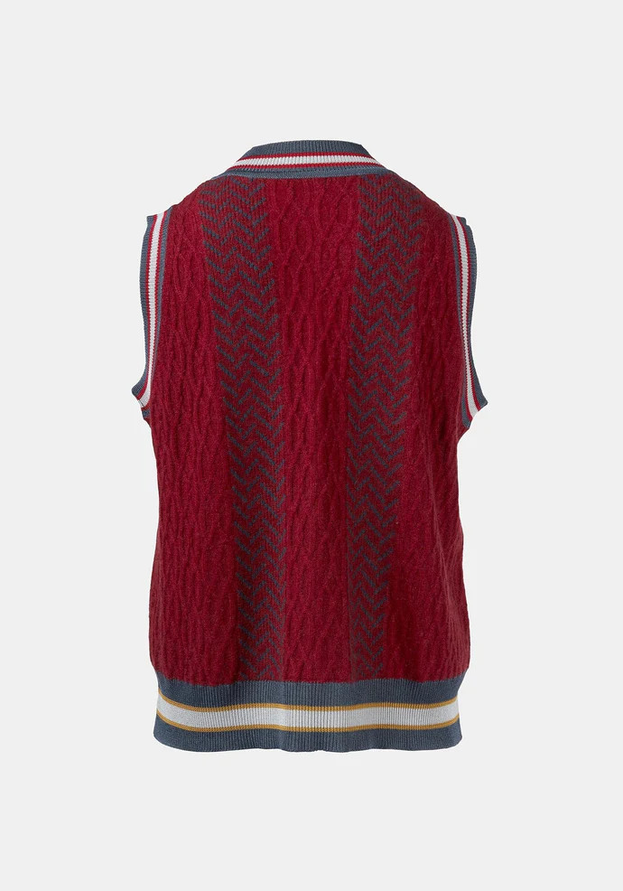 Colete de aspeto desportivo, mas requintado, confecionado numa luxuosa mistura de caxemira e lã, combinando jacquard e malha de tranças para um apelo intemporal.