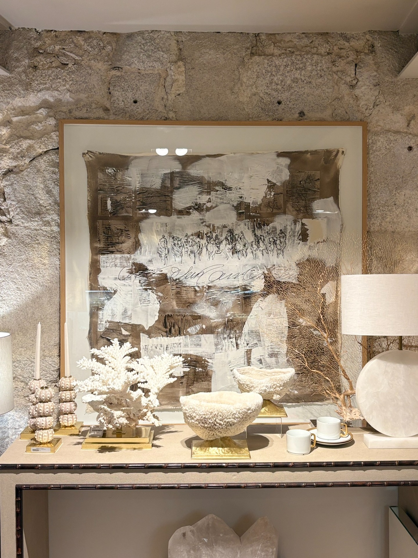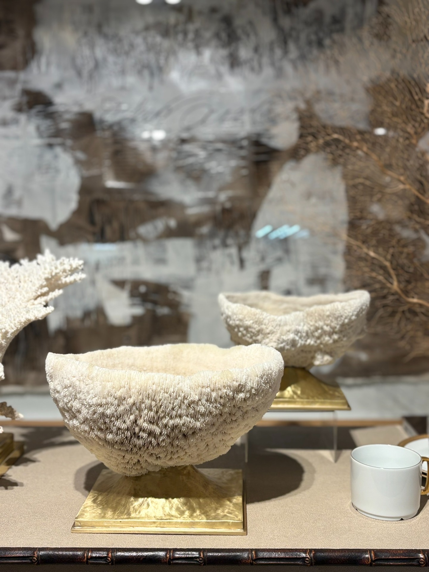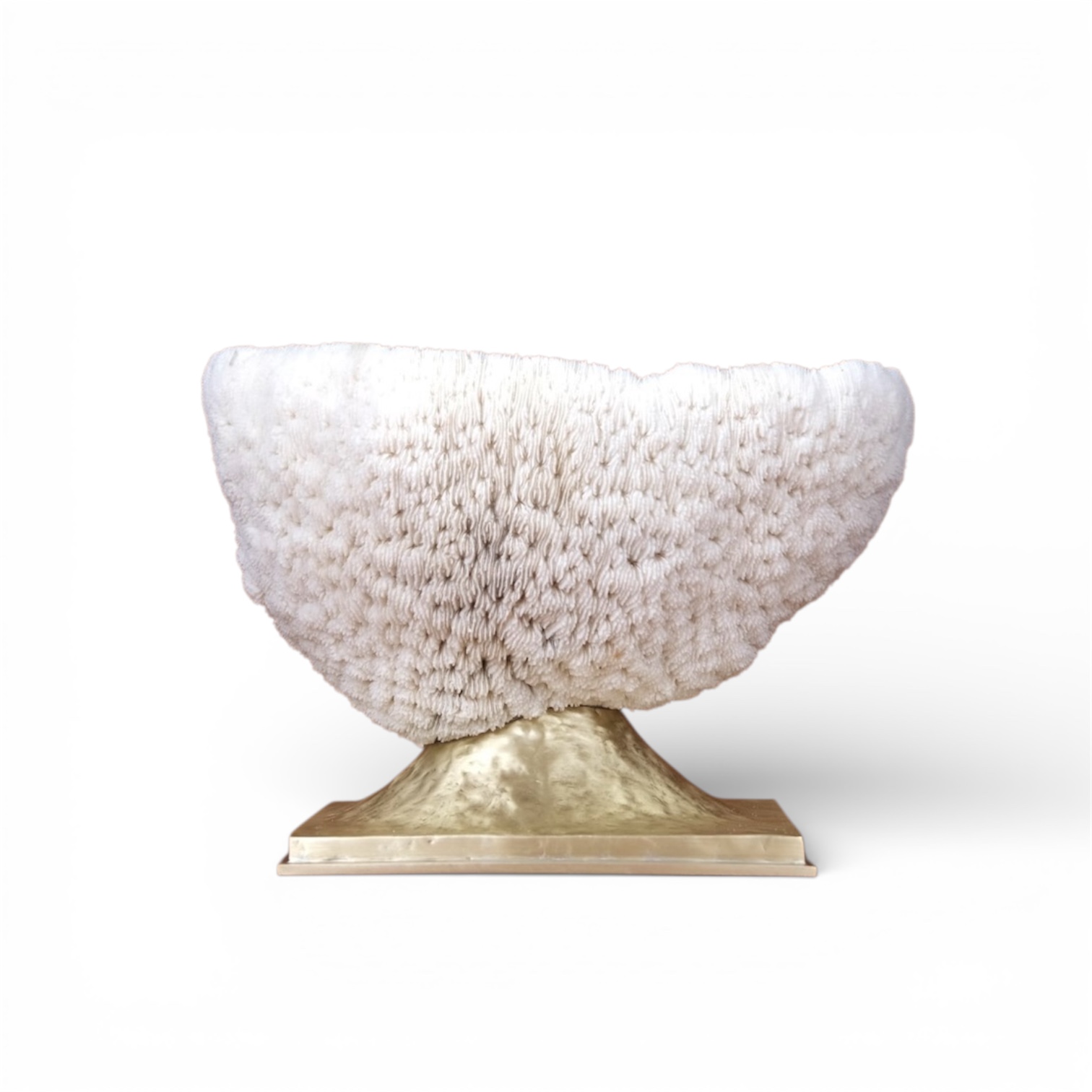 Coral Holomitra plieus em taça com base de latão polido dourada.