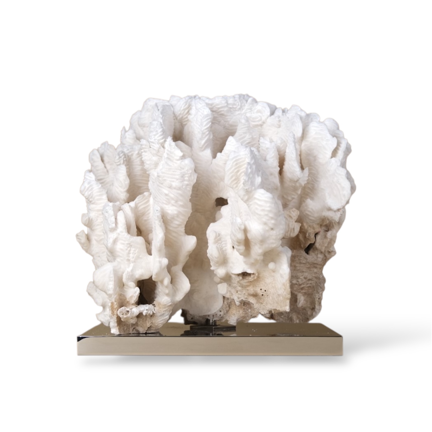Coral rugosa numa base de latão prateada.