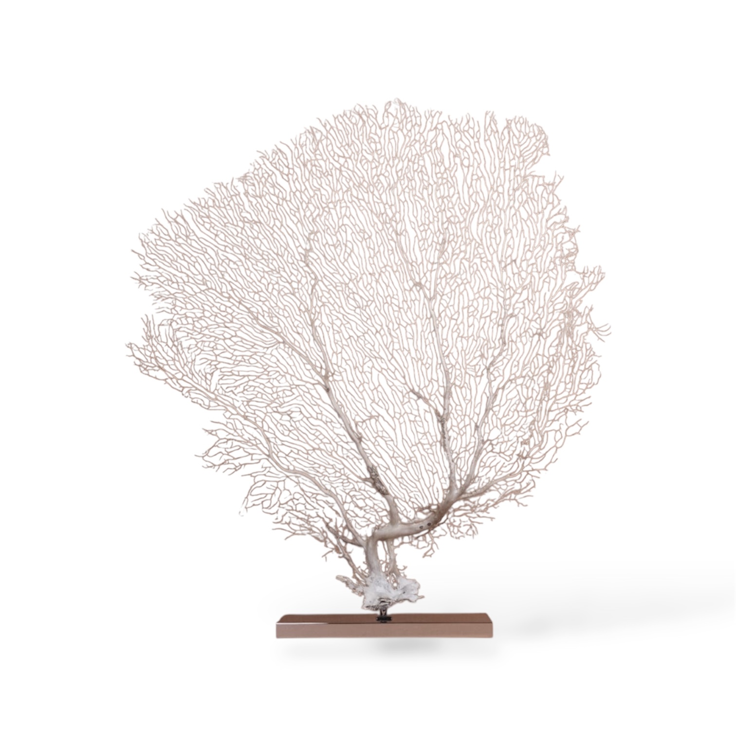 Coral white gorgonian numa base de latão polido prateada, feita à mão.