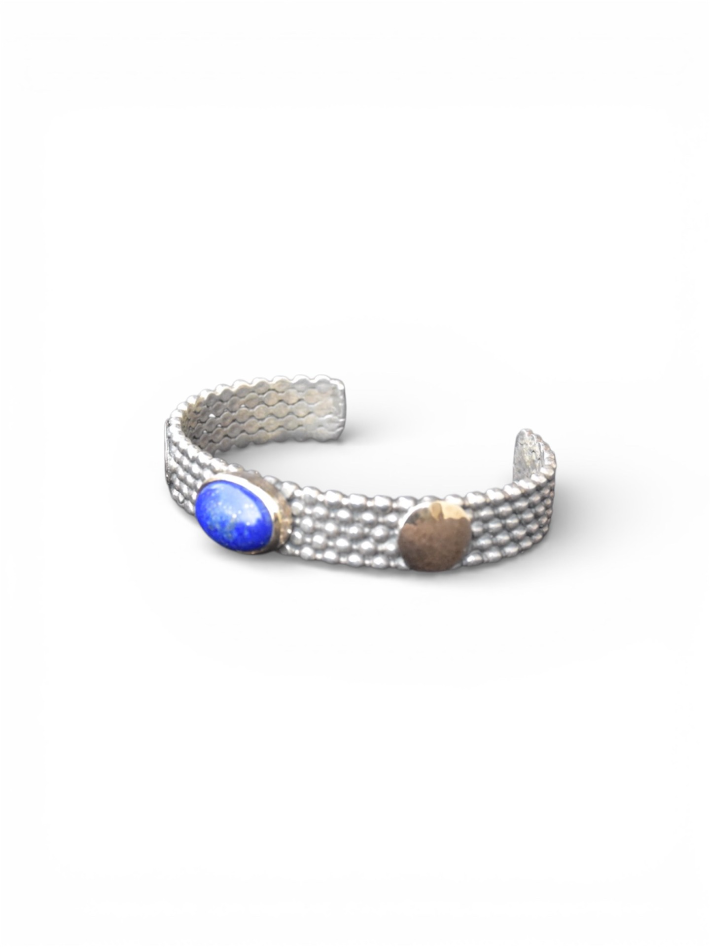 Escrava de prata, ouro e pedra centra lápis-lazúli.