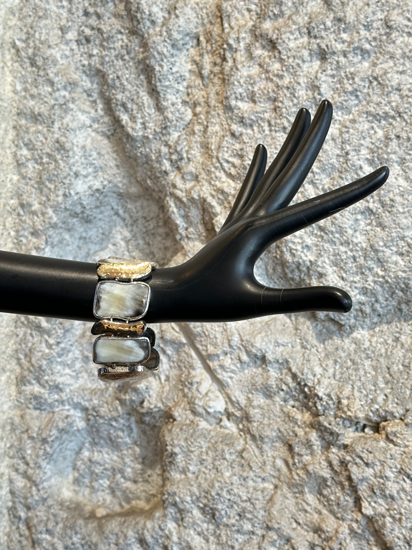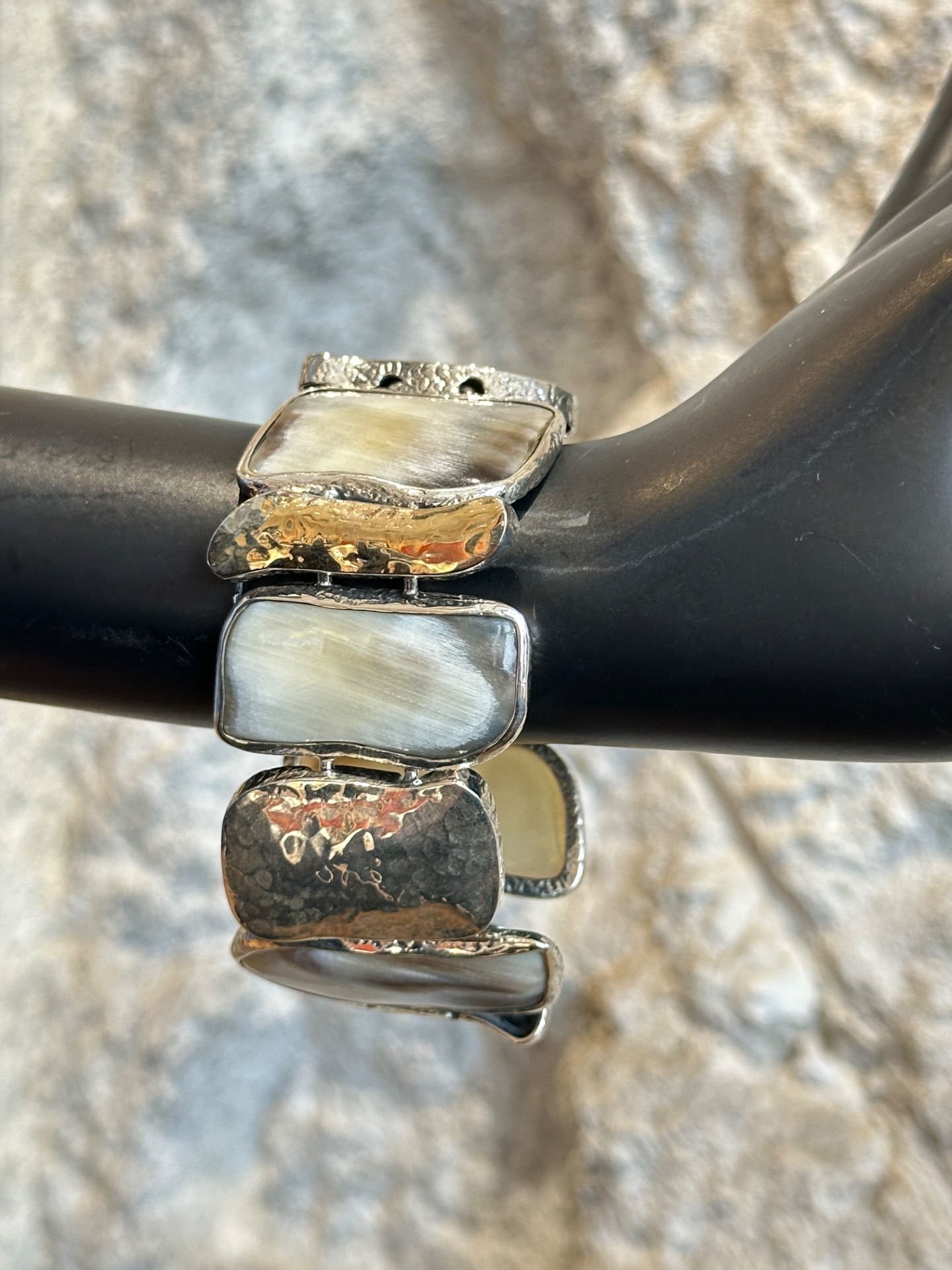Pulseira em Prata 925 (38gr) e Ouro 375 (1.5gr), com osso e pedra labradorite.