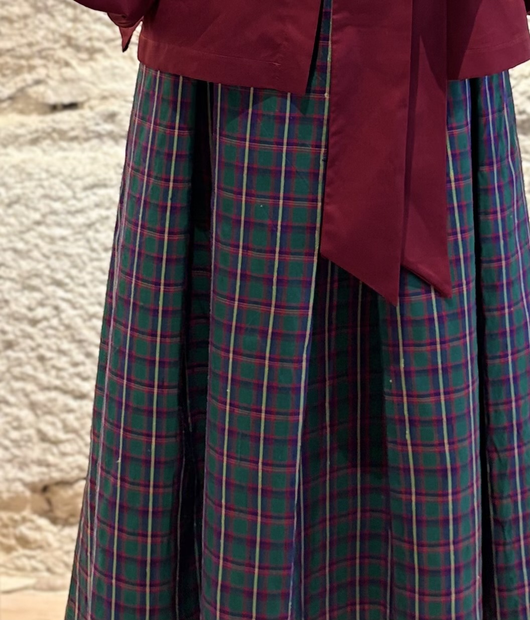 Saia em Seda com pregas cuidadosamente trabalhadas que realçam a silhueta ampulheta. Apresenta um padrão xadrez clássico, ideal para um visual sofisticado e intemporal. Uma peça versátil que combina facilmente com looks mais formais ou contemporâneos.
