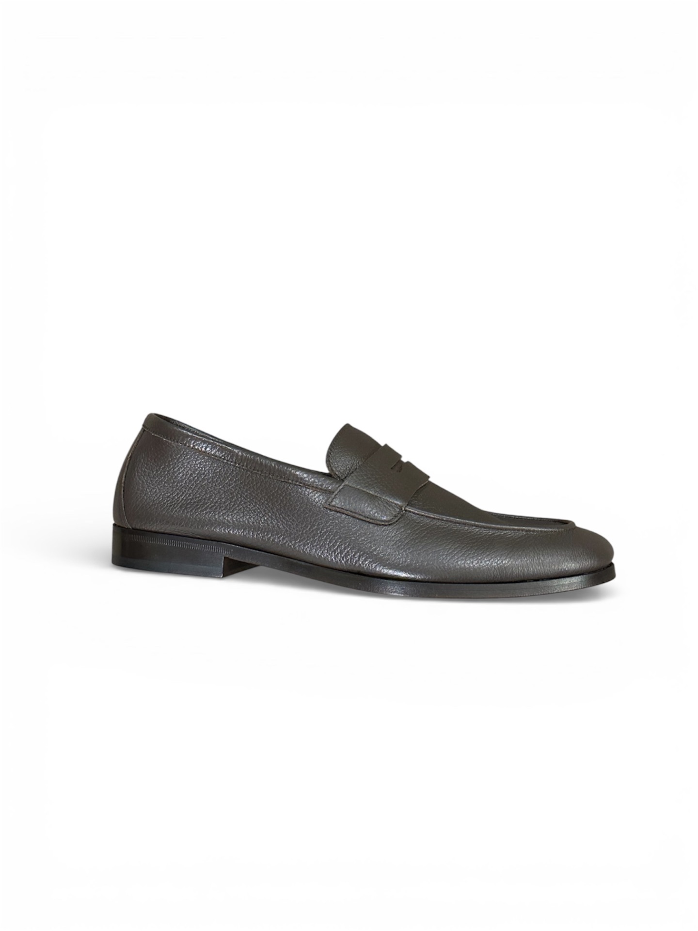 Sapato de pele maleável em castanho escuro.