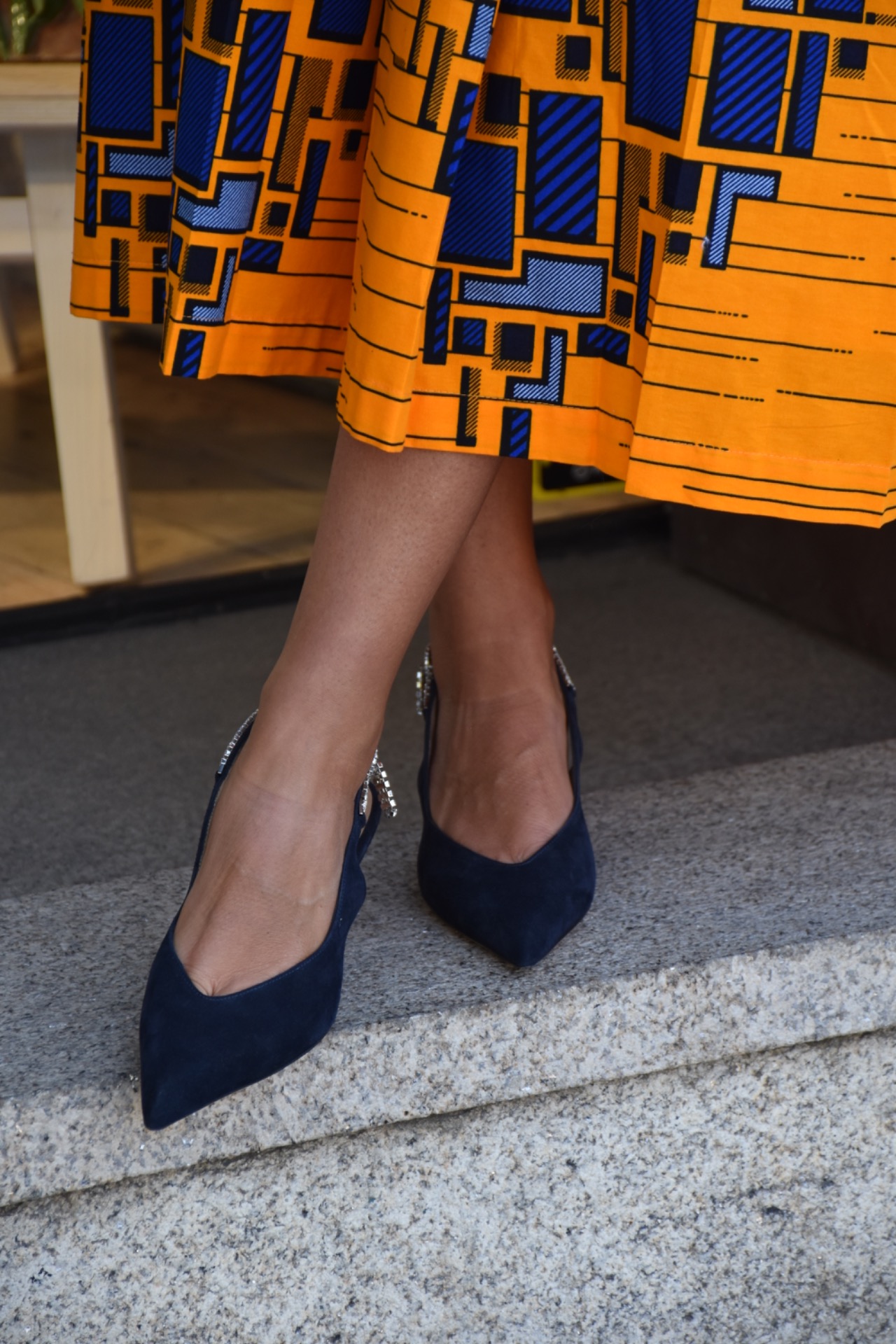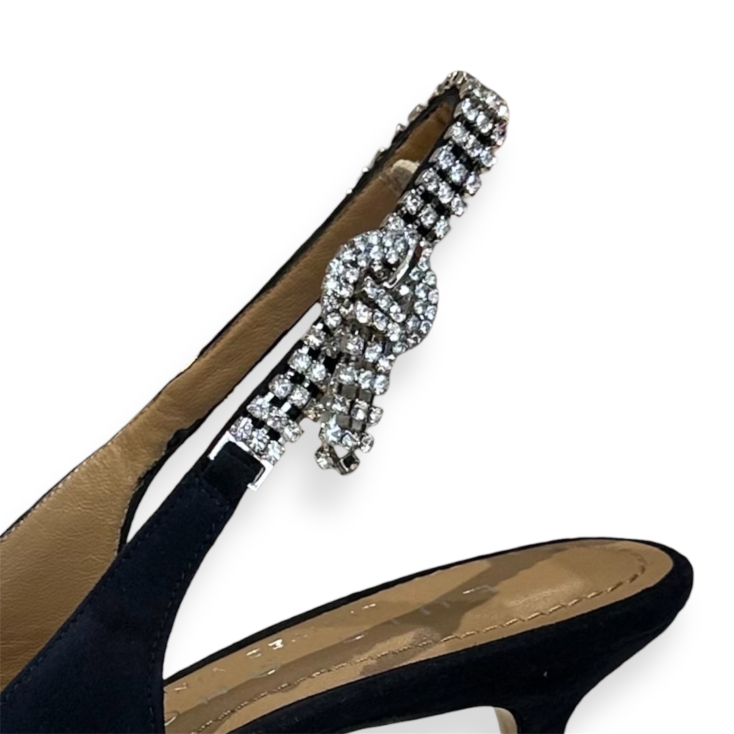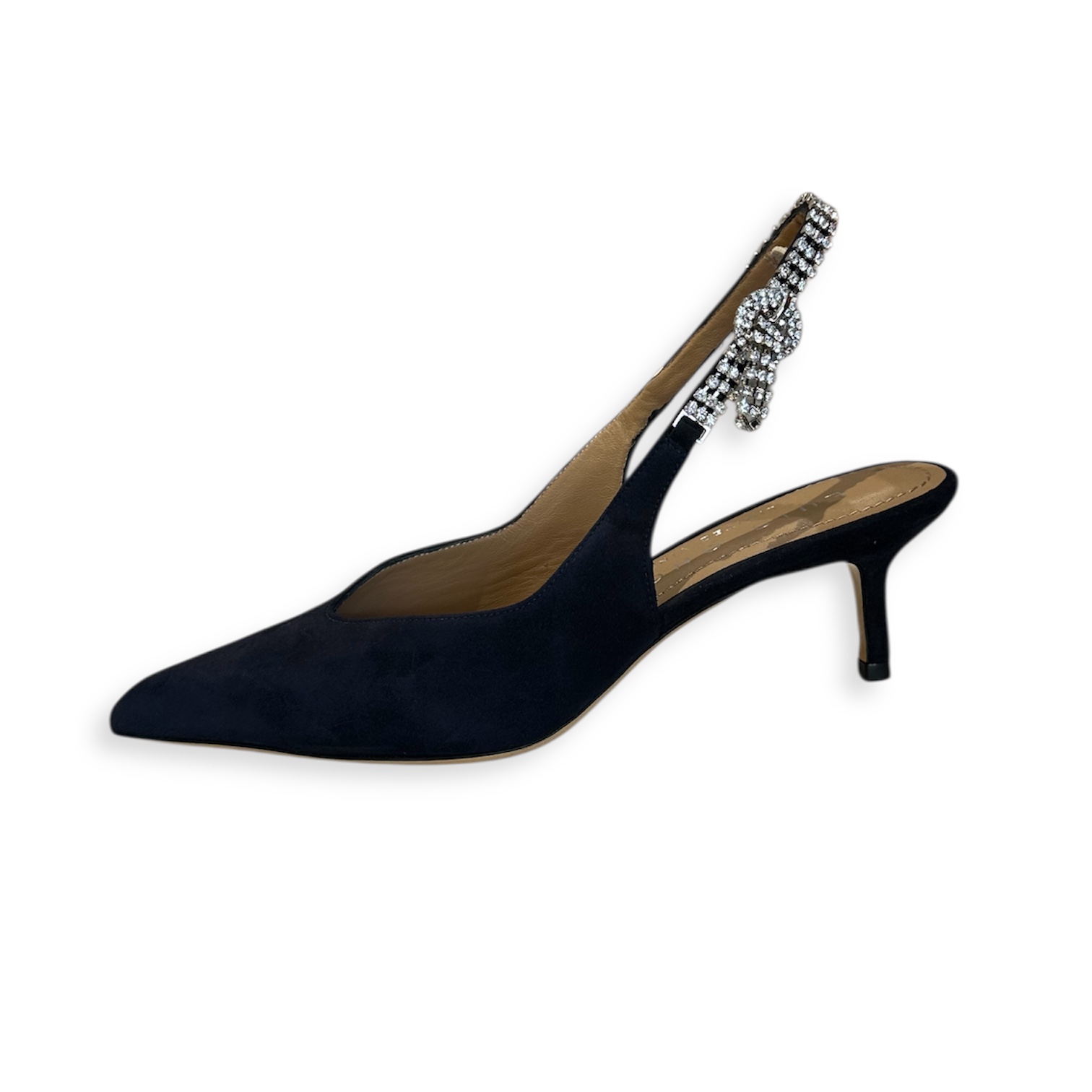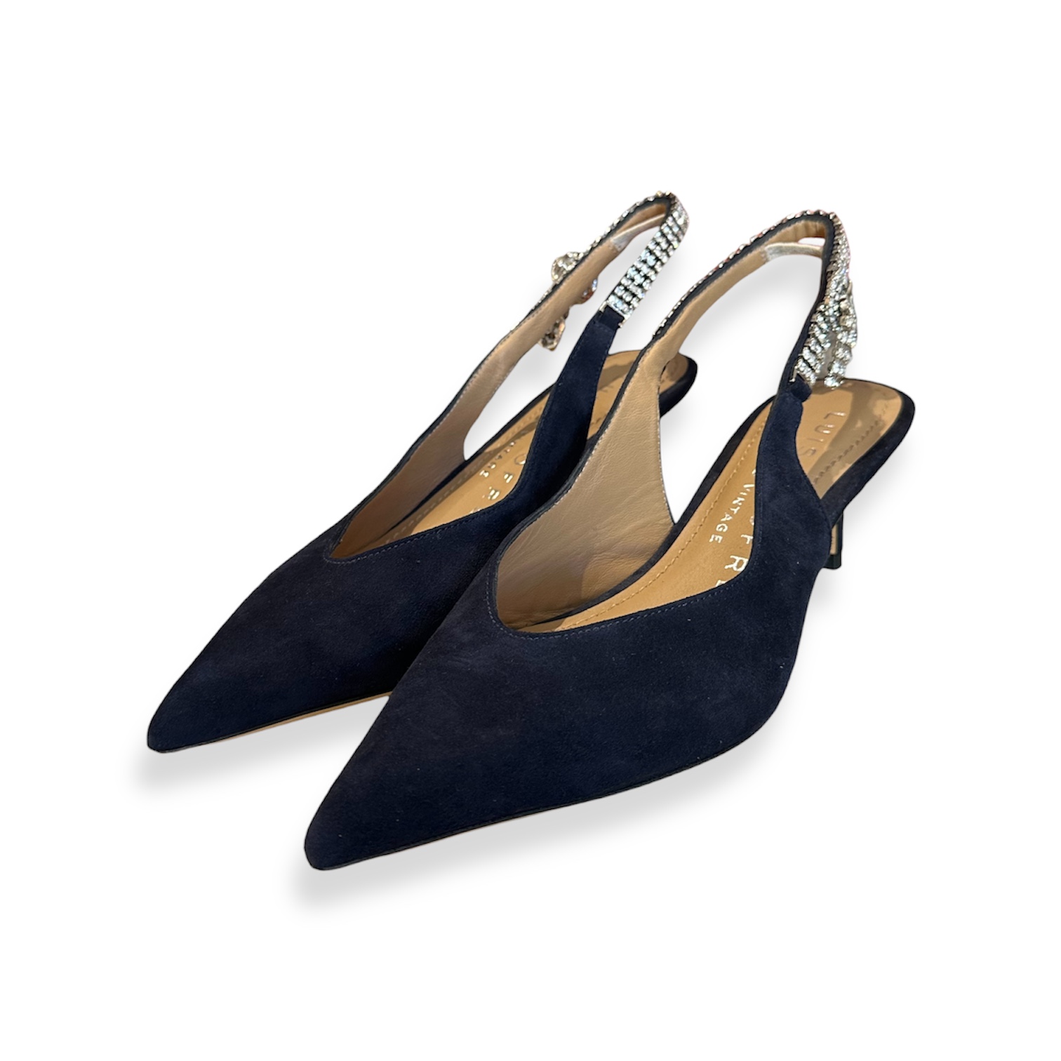 Sapatos estilo alingback azul escuro com detalhe com brilhantes.