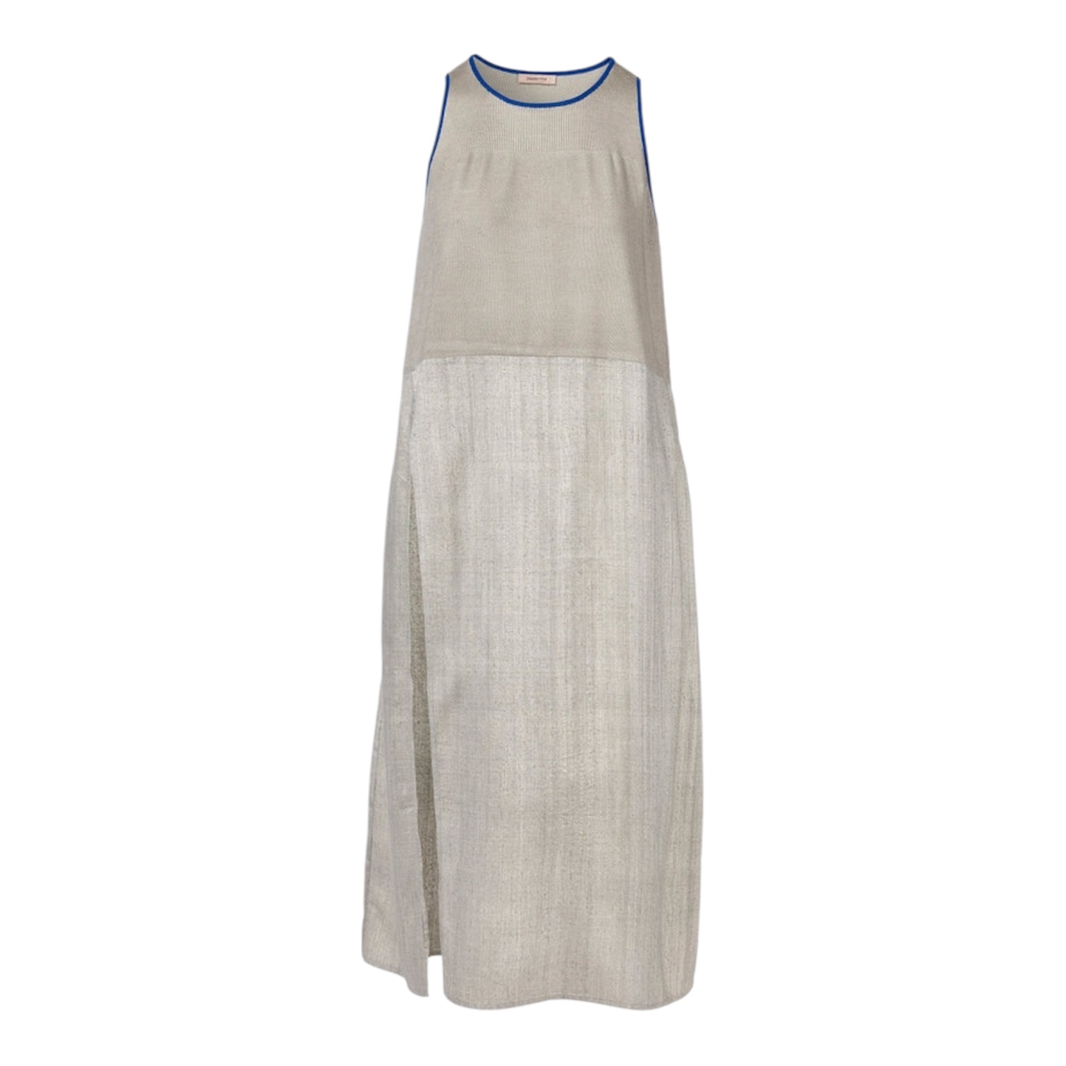 Top tricotado em 100% seda combinado com uma saia tonal extraleve de caxemira, com uma racha profunda para uma silhueta perfeita, criando uma peça muito especial e luxuosa.